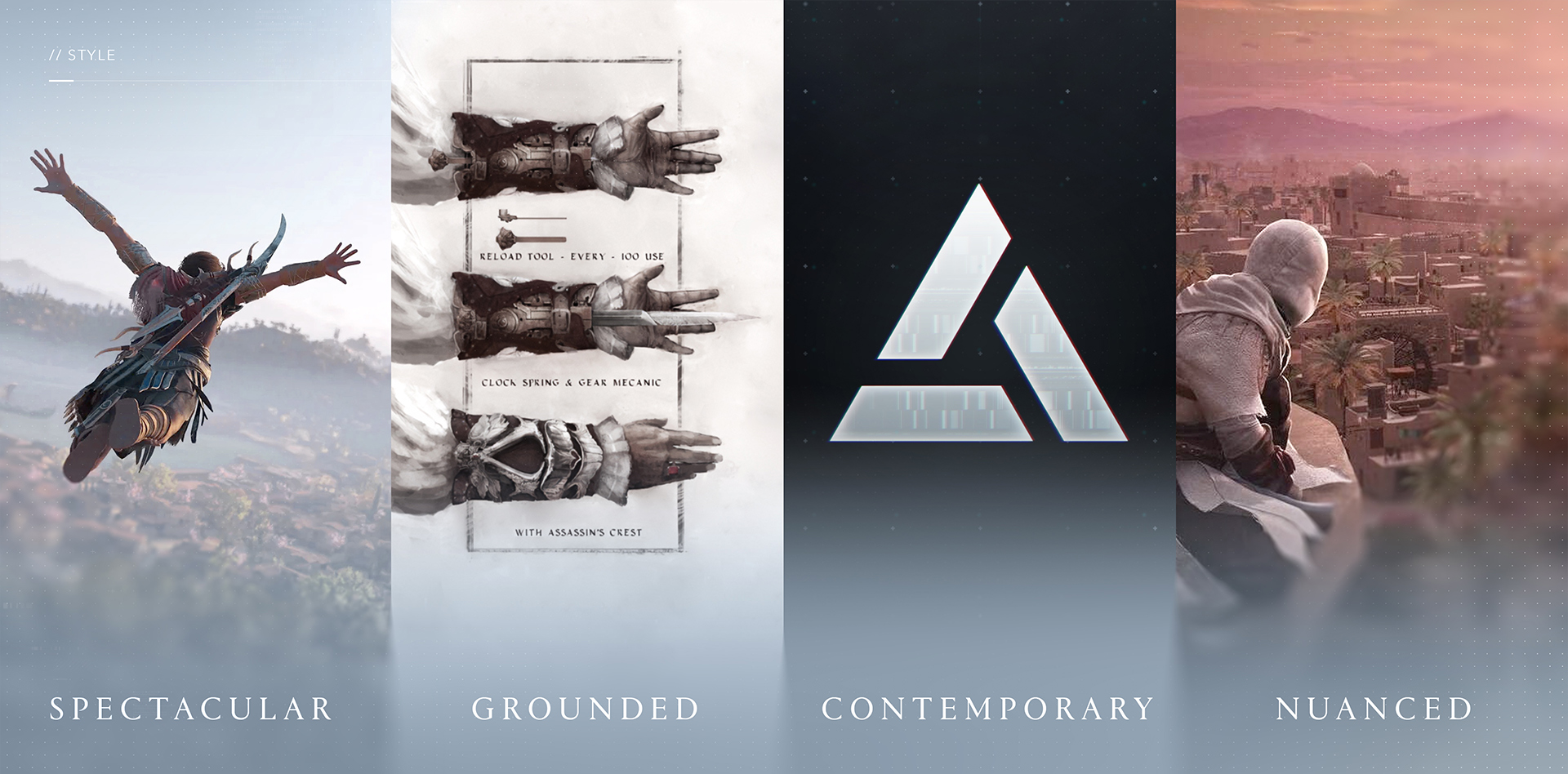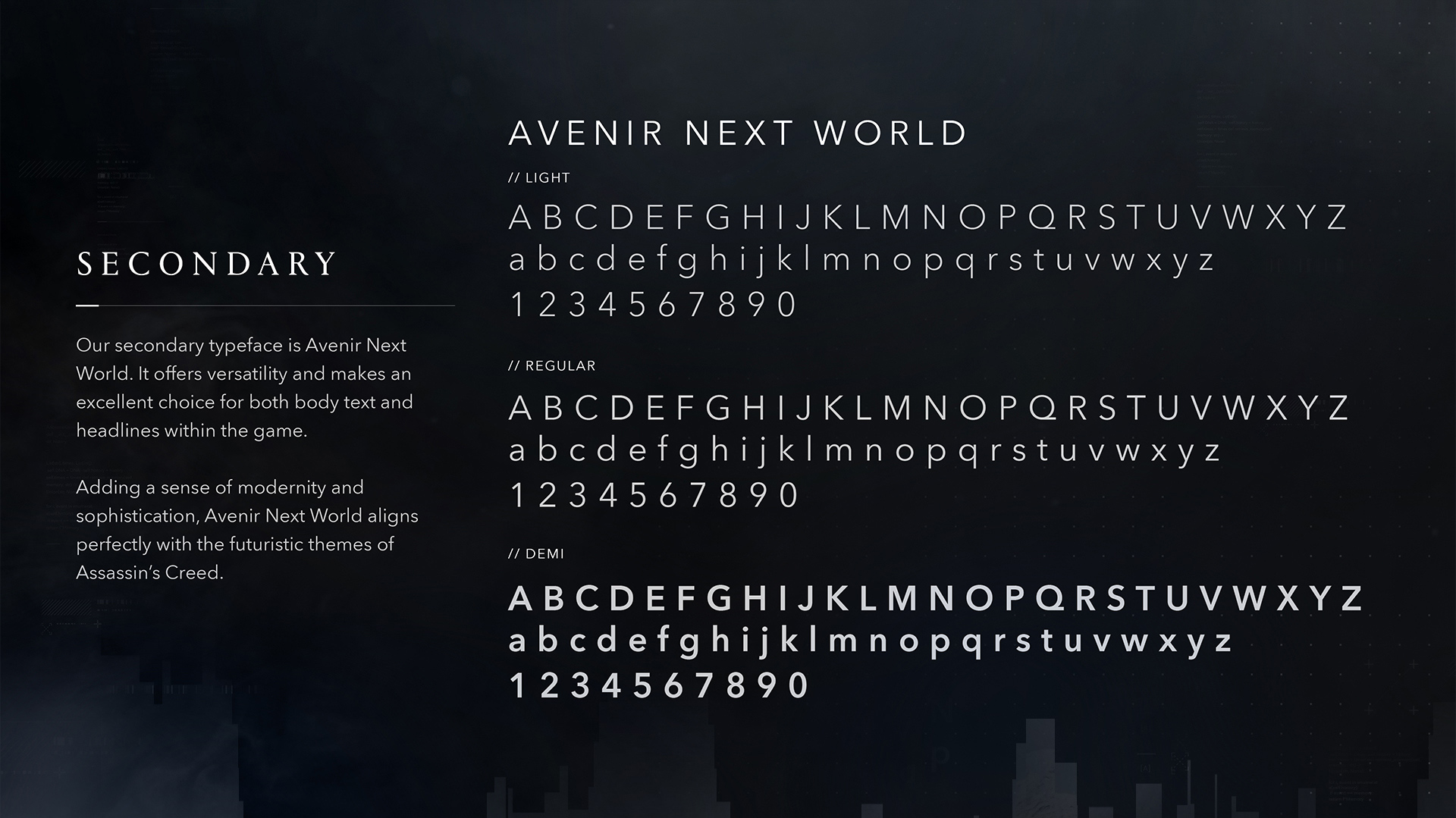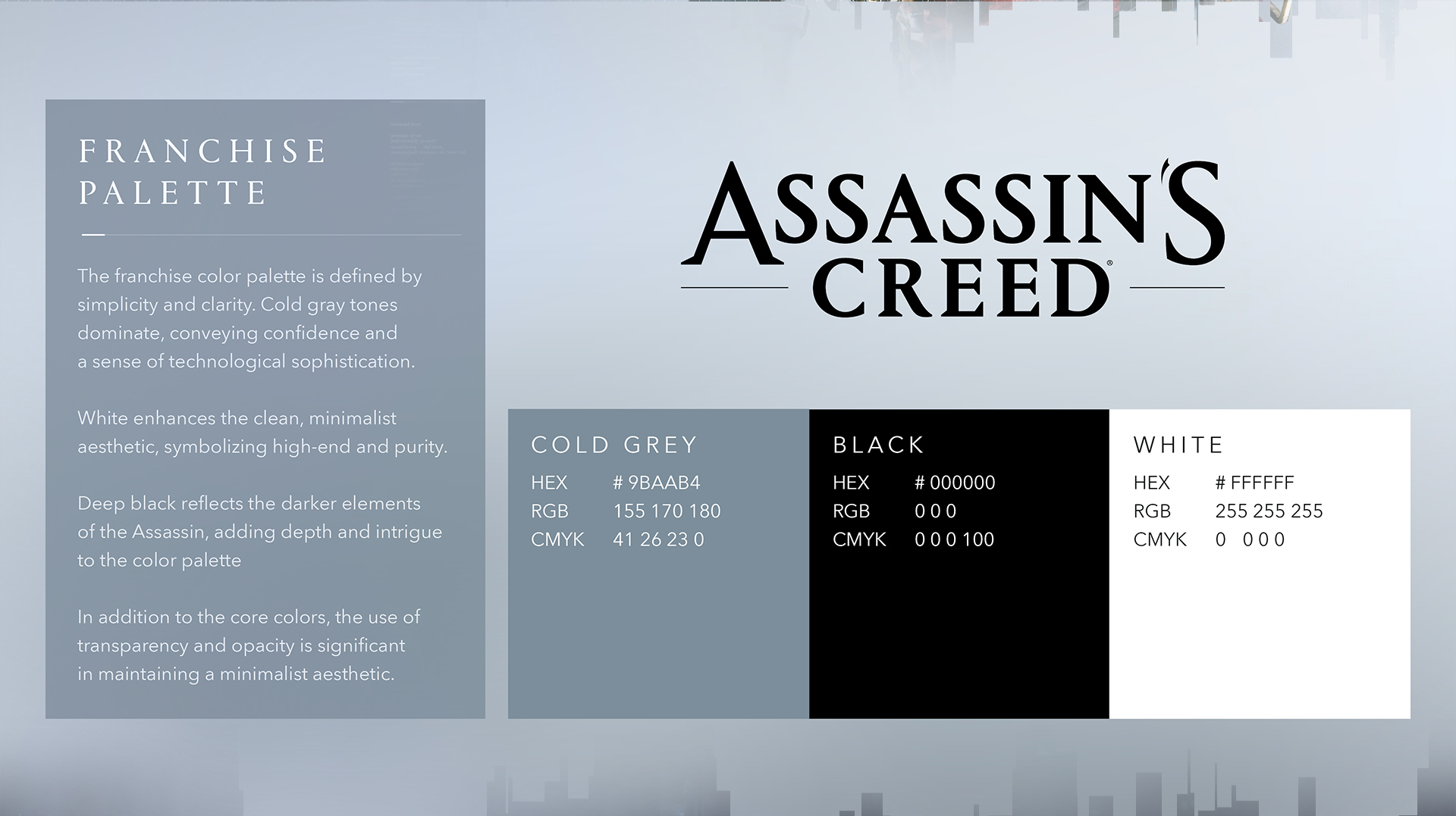 We carried out a major overhaul of the visual assets, introducing a modern cold silver tone paired with subtle Animus glitch effects. Many of the franchise’s iconic key artworks were reimagined to feel both contemporary and true to the brand’s legacy. We clarified key lore elements, such as the Animus, by developing a dedicated visual language and supporting assets.